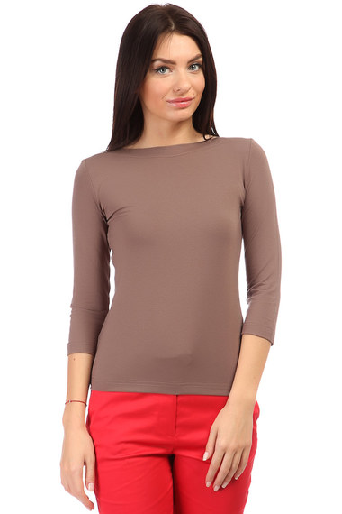 Прекрасная повседневная блузка кофейного цвета послужит отличной базой любого гардероба! Модель облегающего кроя, с рукавами 3/4.
